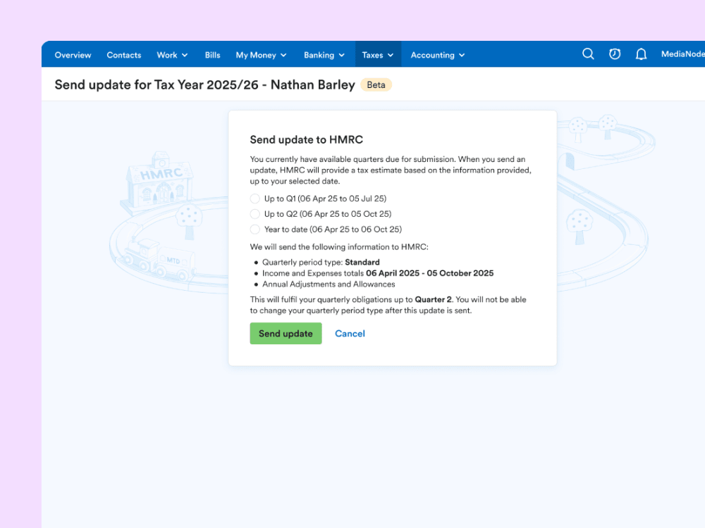 Get compliant with MTD-compatible software that lets you submit quarterly updates and file your final declaration directly to HMRC.